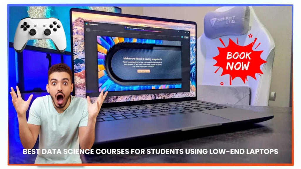 Data science courses optimized for low-end laptops focus on lightweight tools like Google Colab, Pandas in JupyterLite, and cloud-based Jupyter